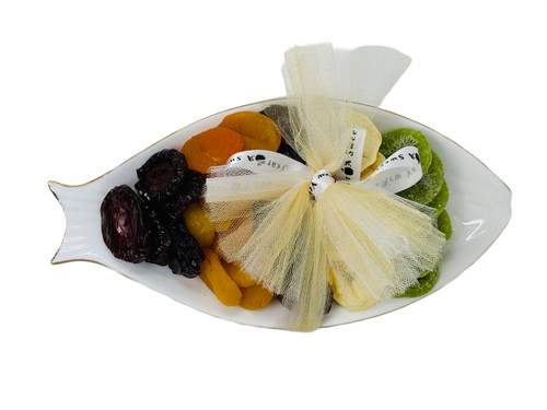 Festive and Elegant White Ceramic Rosh Hashanah Fish Shaped Dish With Gold Trim