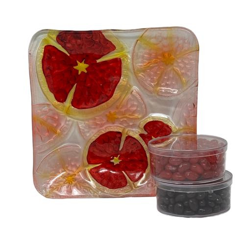 Description Beautifully Textured Glass Dish With A Vibrant Pomegranate Design -Sure To Enhance Your Rosh Hashanah Table Filled With Delicious Candy And Chocolate Wrapped With An Elegant Ribbon